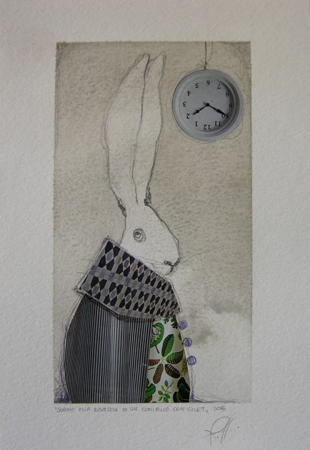 Pare che sia capitato anche a lei di seguire, nei suoi fantastici percorsi, un curioso coniglio con il gilet, tant’è che si ritrova, quasi in parallelo con il viaggio di Alice, in un immaginario “Paese delle meraviglie”.