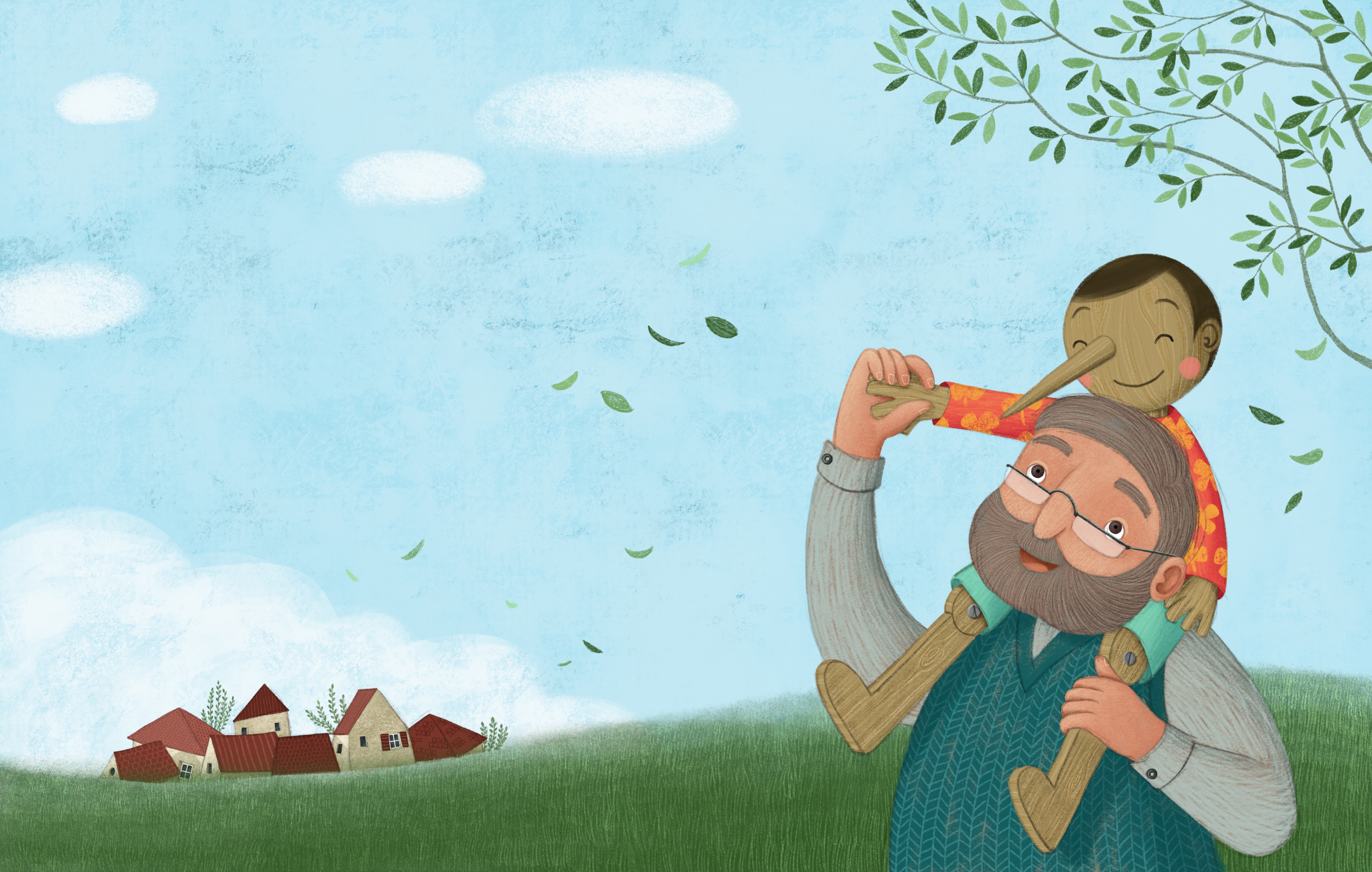 Illustrazioni per l’albo “Papà Geppetto” scritto da Ester Tomè (selezione di alcune tavole)